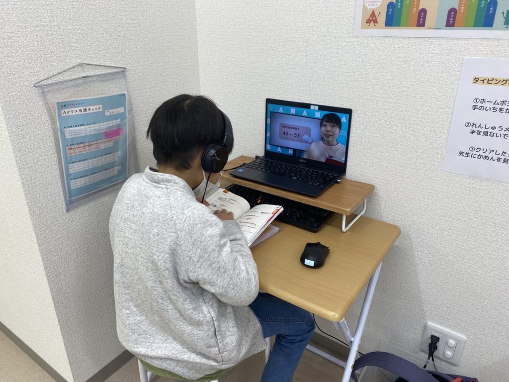 画面の中の先生と、一緒に声を出して、