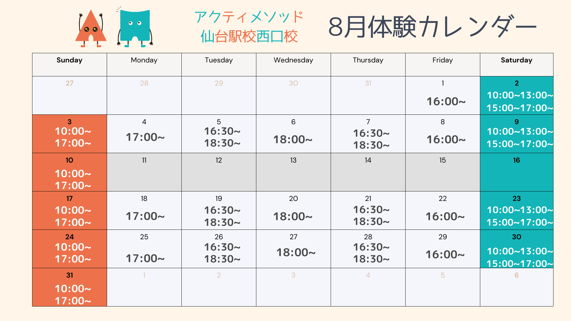 こんにちは!アクティメソッド仙台駅西口校です😊 7月の無料体験会スケジュールを更新いたしましたので、お知らせいたします📅✨ 6月もたくさんの方にご参加いただき、「タイピングで英語が楽しく学べるなんて初めて!😲」というお声 […]