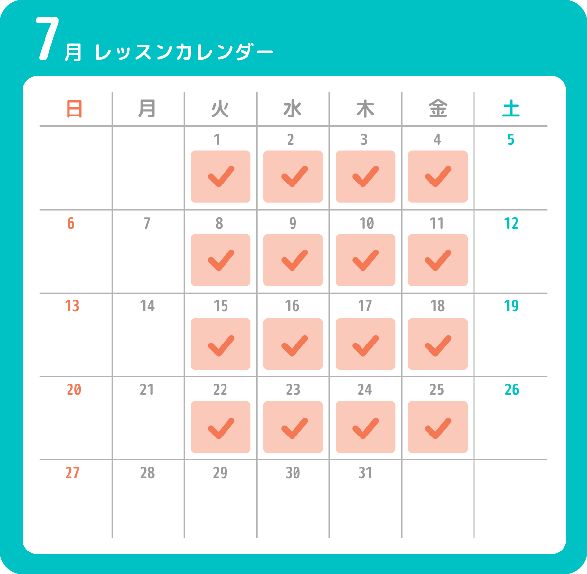 7月は毎週火曜日~金曜日でレッスン開催します🎊