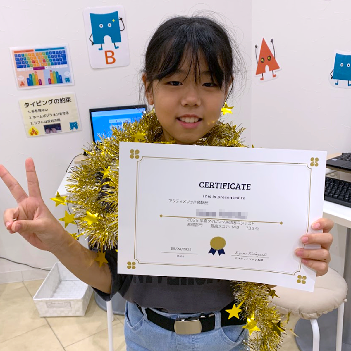 夏のタイピングコンテスト基礎部門でも100位以内に入り、見事な成長を見せてくれました。