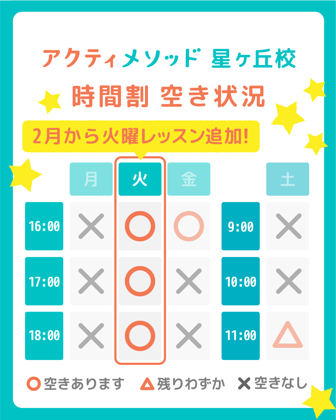 📢【お知らせ】2月から星ヶ丘校のレッスン曜日が増えます✨