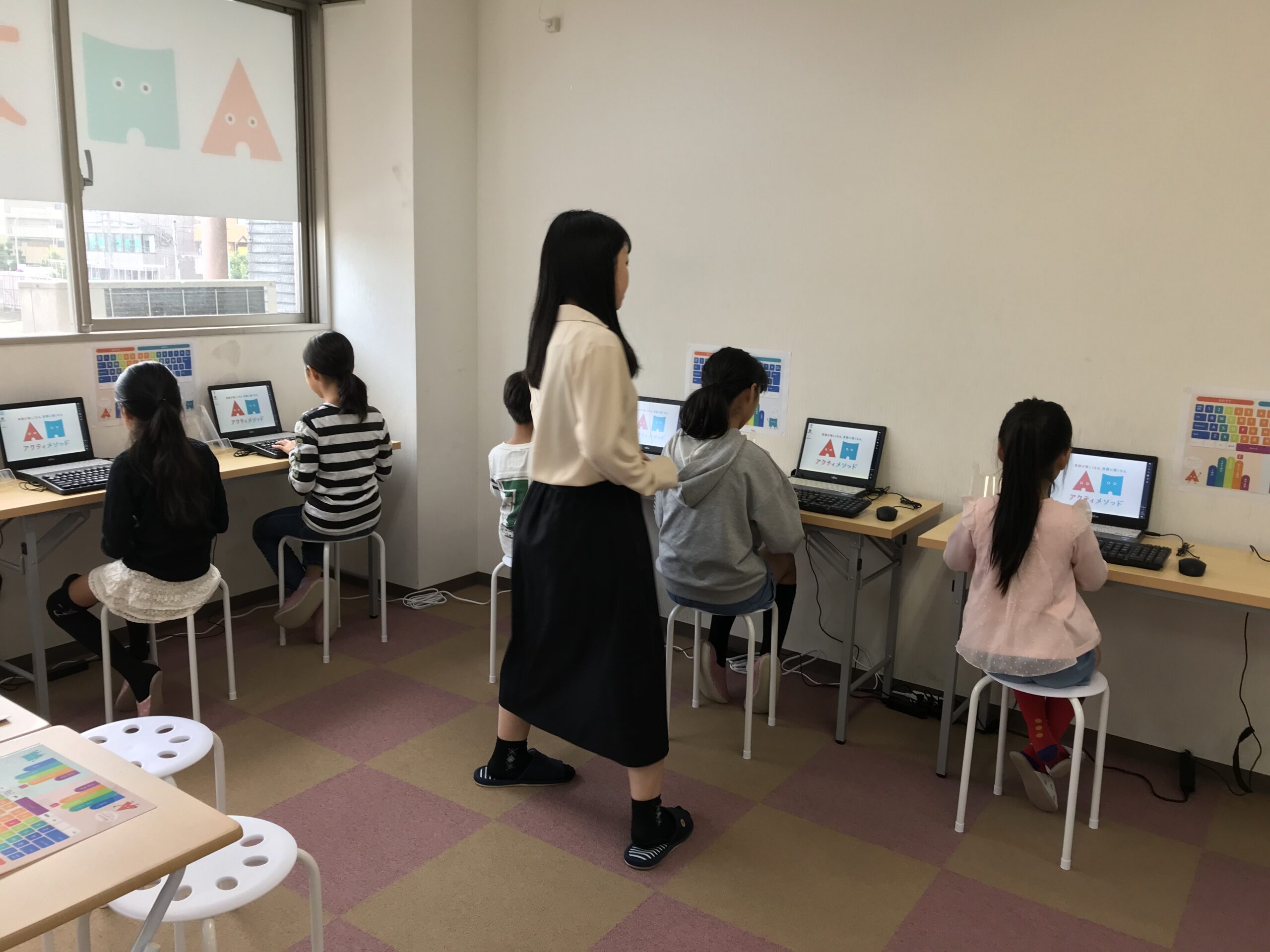 アクティメソッドオンライン校では、英語の音やスペルを「指の動き」と結びつけながら覚えていく独自のタイピング練習を行っています。