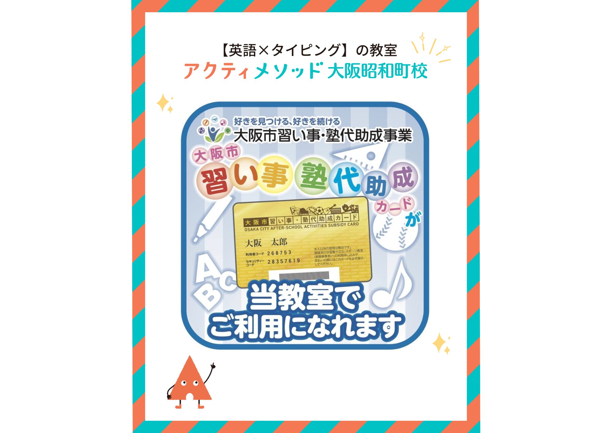 大阪昭和町校 大阪市習い事・塾代助成カードがご利用いただけます