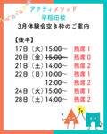 アクティメソッド早稲田校では、現在、春期新入会生を募集中です。