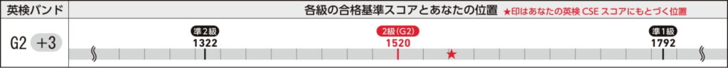 この図の場合、英検2級一次試験合格から+3のバンドに位置していることが視覚的に理解できます。