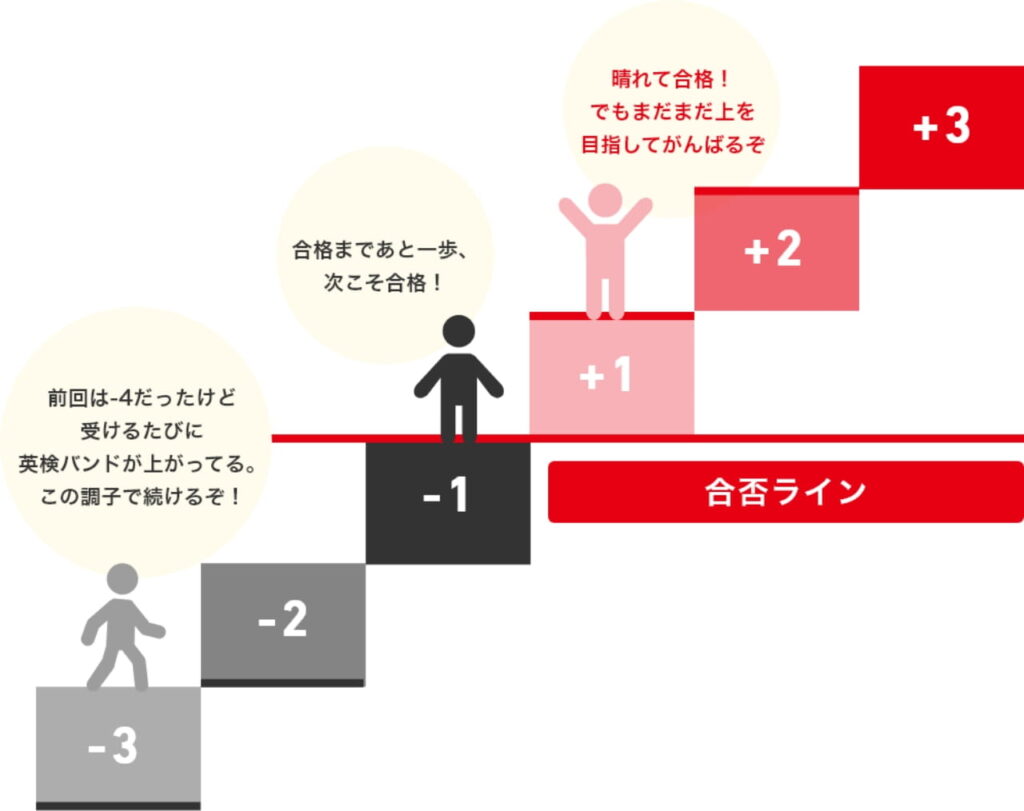 合否だけでなく、英検バンドが上がっていけば英語力の指標となり自信にもつながるでしょう。